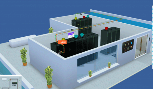 3D可视化运维管理:只需轻点鼠标即可任意穿梭于不同城市、不同楼宇里的各个机房,运行状态、安全环境等一切情况即可掌握,花费几秒钟即可搞定。