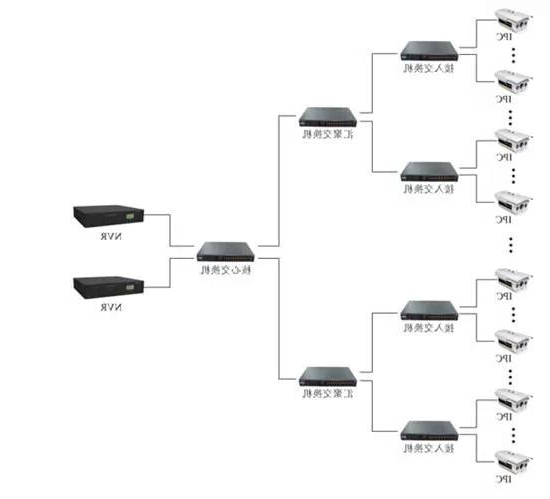对于100个点位的组网,一般只有核心交换机与接入层交换机,没有用到汇聚层交换机。