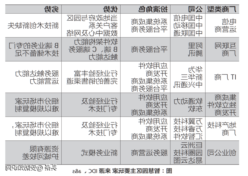 目前智慧园区的玩家类型较多,可分为电信运营商、互联网厂商、IT 厂商、集成商、地产科技厂商、创业公司等六种类型,大部分年轻的创业公司均集中在运营管理服务领域,这也意味在该领域目前竞争激烈并缺乏领军企业,未来具有较大的成长空间,因此在这领域可能会迎来大量的企业进军。对于这批年轻的企业而言,积极引进资本,汇聚信息资源将成为新常态,以此应对市场激烈竞争。在基础硬件及集成领域,情况则相反,大部分厂商均为某细分领域的佼佼者,如安防龙头企业海康威视等,后发者想与他们竞争难度较大,同时各家在业务的开展更多是以相辅相成为主,相比服务运营领域,这部分的市场竞争较为缓和。