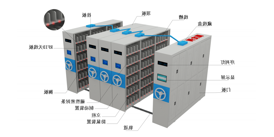 智能化是当今社会发展的大趋势,各行各业都在依靠自身的智能特性紧紧把握着各自市场命脉,物联网、数据分析等信息技术的发展和应用,也大大提升了密集架自身的智慧化特性,通过RFID标签对档案存储信息的标注与识别,可以快速获取档案的位置与编目信息,达到在档案管理系统中检索某一档案,便可快速获取相应位置信息的目的。