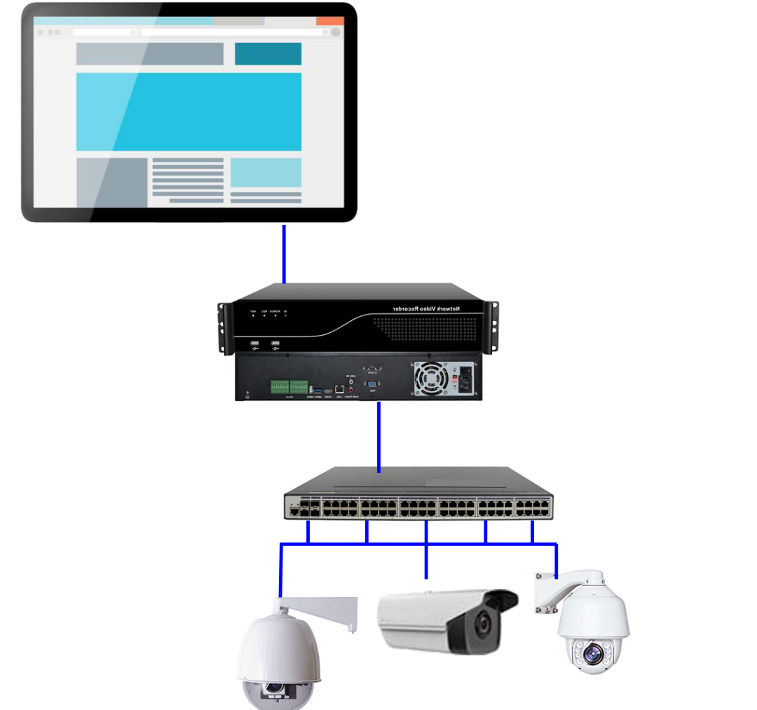设计在机房出入口、机柜间的通道、走廊等重要区域安装摄像机,进行全天候的视频图像监视。摄像机通过视频线直接接入到监控服务器的视频输入接口(硬盘录像机或视频服务器,同时将硬盘录像机或视频服务器接入与监控服务器相同的内部网络中),通过监控平台软件进行图像监控。
