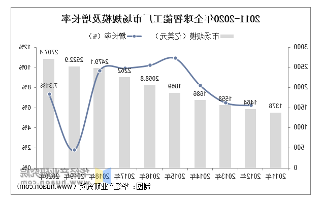 2011-2020年全球智能工厂市场规模及增长率