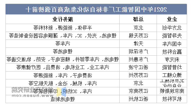 2021年中国智能工厂非标自动化集成商百强榜前十