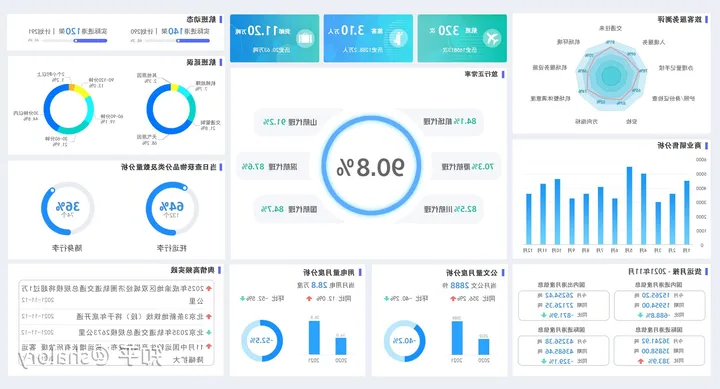 通过仪表盘、曲线图、柱状图、饼图等多种应用方式对航班架次、航班延误率、AIBT、AOBT等数据实时监控等功能外,还可以通过模型预测航班运行情况,提高对机位、廊桥和跑道的利用率,促进机场整体的运行效率。