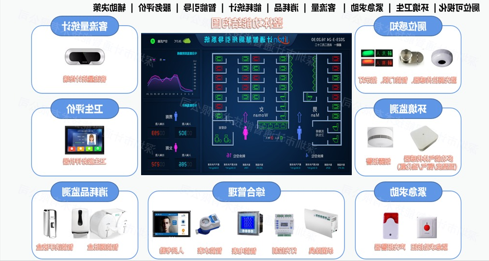 通过“物联网+厕所”思维,运用厕所大数据匹配不同场景的智能化需求,提供厕所异味监控、节水节能、服务指引及其他个性化需求,实现了对厕所的智慧、精细管理。