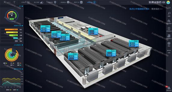 产品采用可视化技术为数据中心建立一个仿真监控系统,来表达及展示数据中心的一切。通过技术手段把数据中心的一切物理存在的对象进行数据建模(从楼宇到设备,从线路到端口),以3D的方式在计算机中生成虚拟数据中心,将多种管理系统的复杂信息融会在虚拟仿真环境之中。