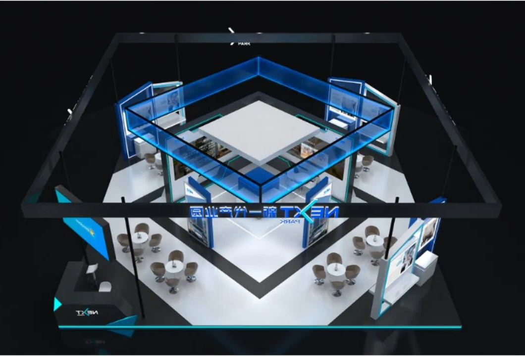 深圳J9国际品牌 展台坐落于深圳新一代产业园展位,与一批园区科创企业组团参展。科幻风精装展台尽显物联网主题风格。