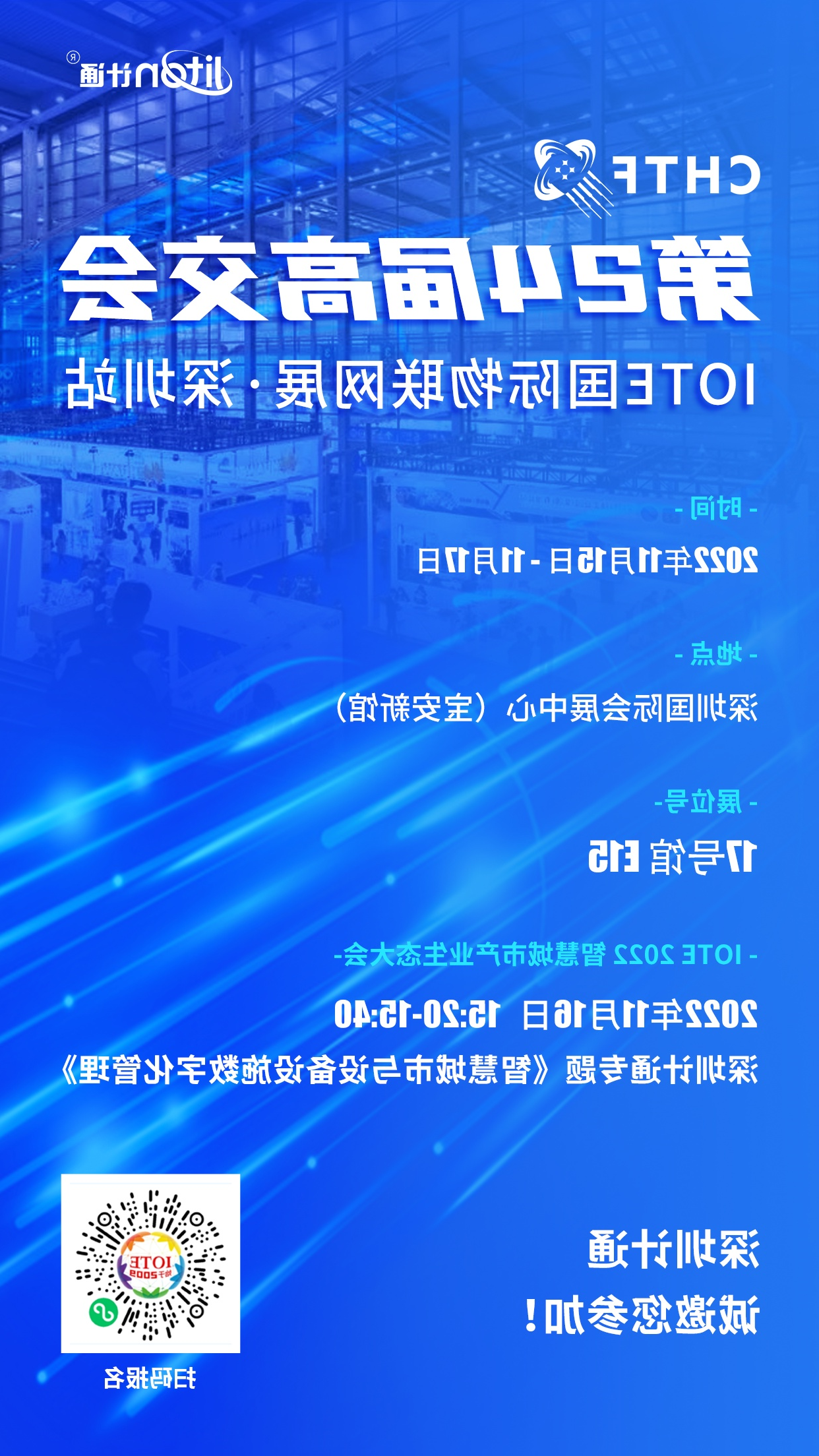 报名请通过下方海报扫码进行,扫码之后请选择IOTE国际物联网展-深圳站,后确认提交即可。