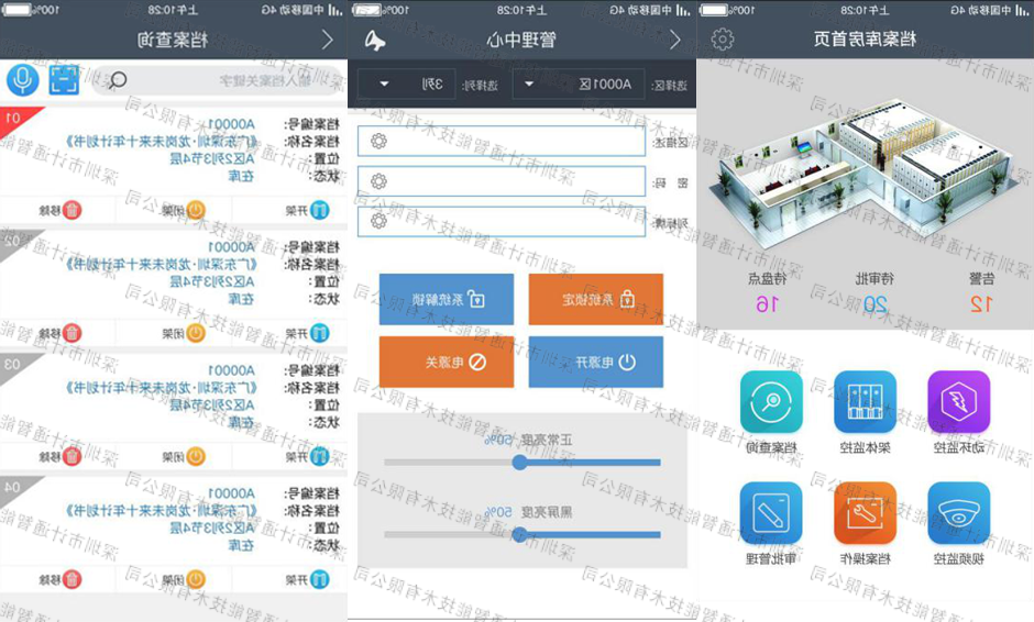档案库房智能移动管理采用移动APP软件,可通过平板电脑、手机等移动终端设备实现库房的智能移动管理,实现用户无需进入库房监控中心,即可随时随地可实时掌控和了解档案库房的运行情况。