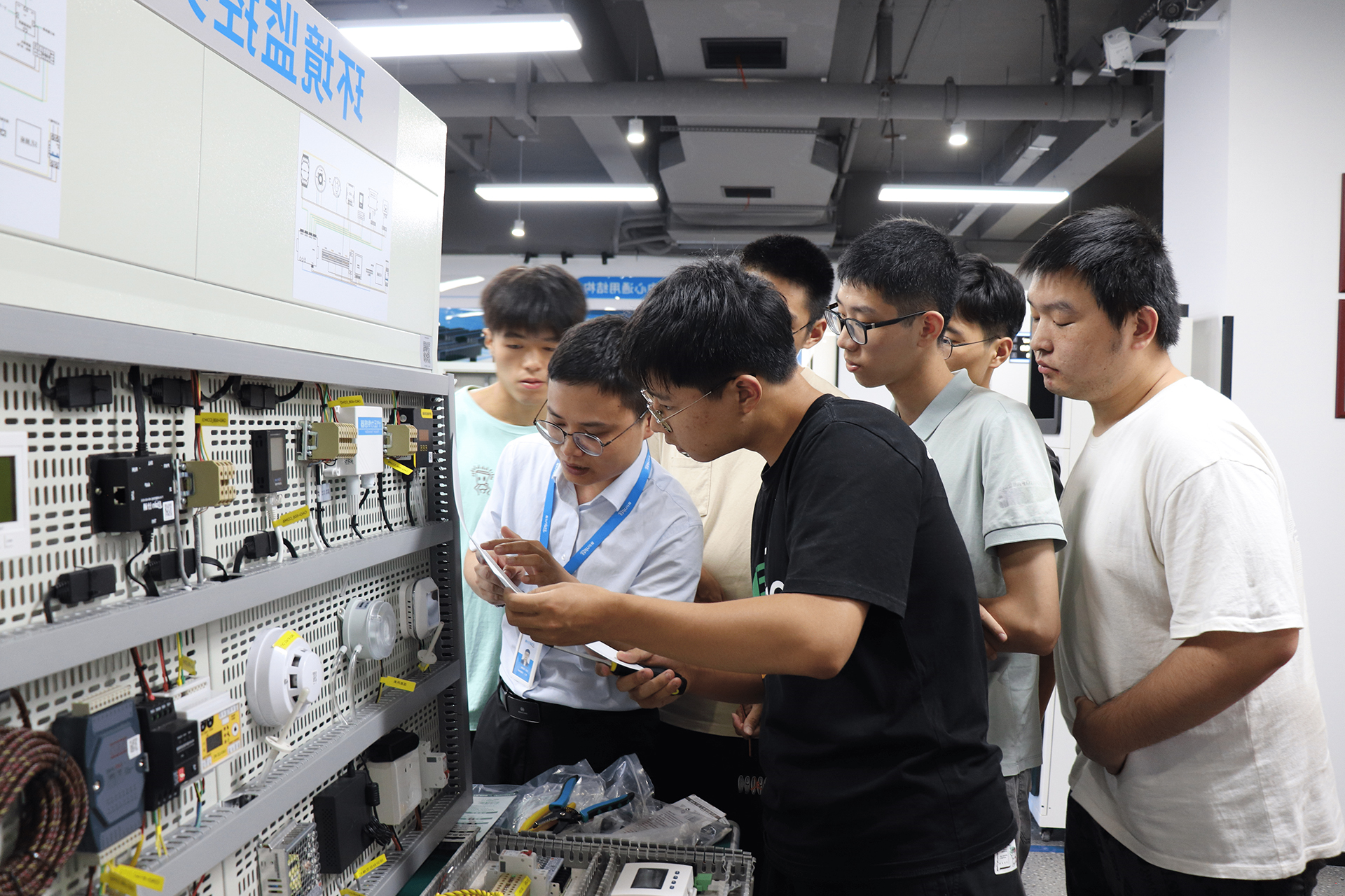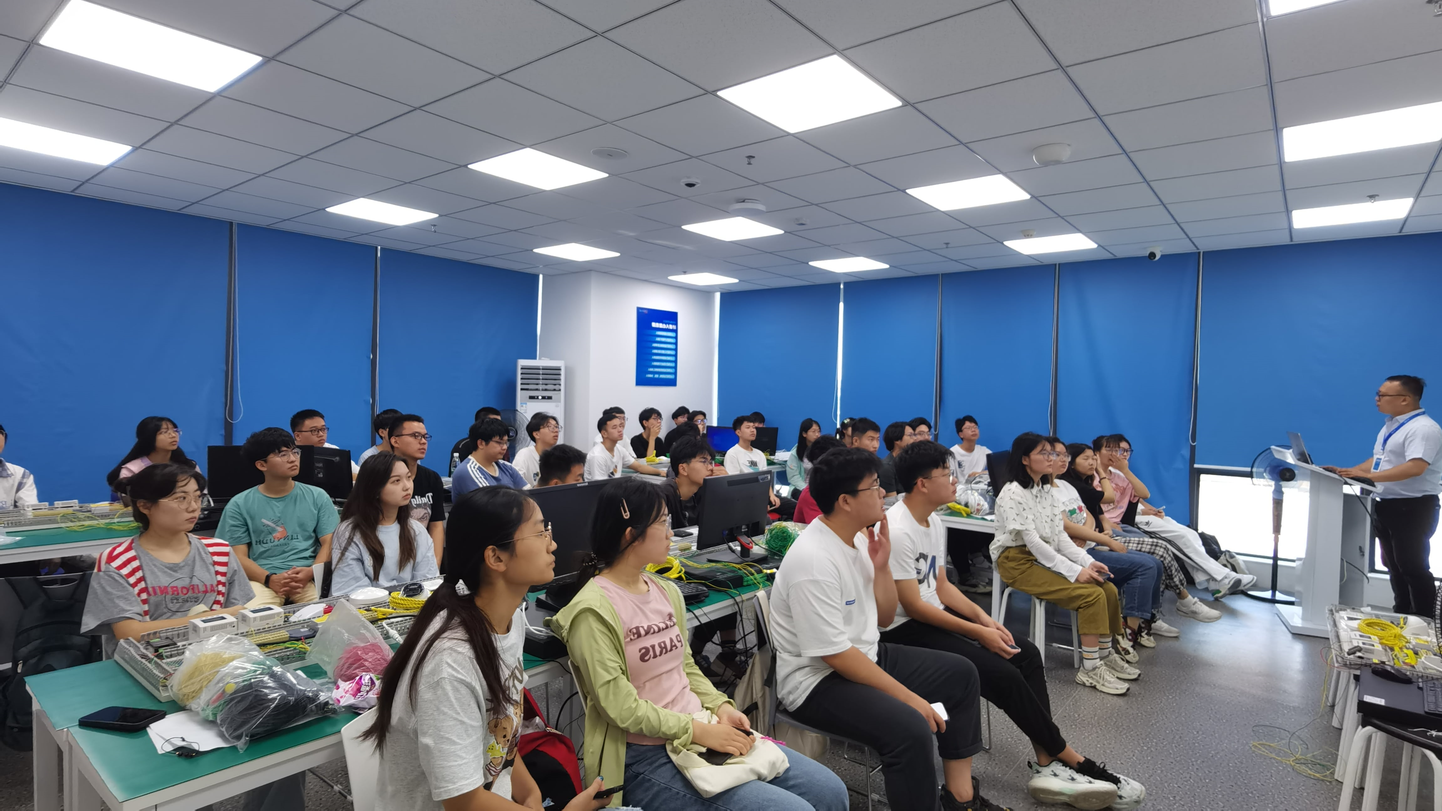 通过企业介绍、软件架构讲解、硬件功能讲解、软件使用培训、硬件实操培训5大篇章,学子们更深刻的了解到智能监控数字化解决方案在各行业的应用现状、更好的认识到智能监控系统与产品为数字化转型需求的赋能方向与效果、更直观的感受到人工智能、数字孪生、视觉识别算法、AI诊断、VR运维、机器人巡检、RFID等先进前沿技术在智能监控领域的应用。